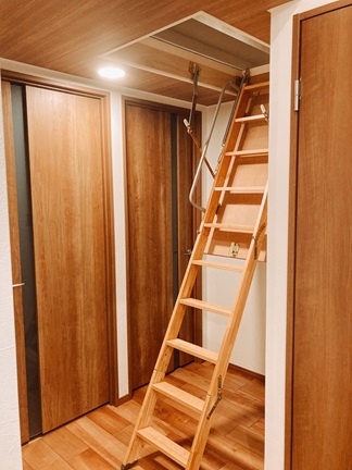 梯子を下げた状態でも通れるよう廊下を広めにしました。