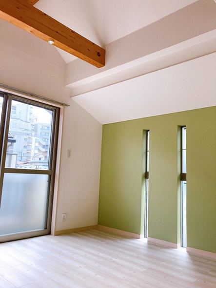 ↑角部屋は2面採光。縦長の窓で雰囲気のある空間になりました。