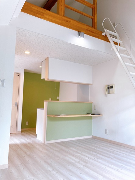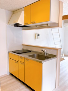 ↑キッチンの上はロフト。ロフトには照明やコンセントもあります。