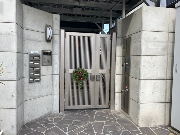 ←各部屋の玄関はブロック塀で仕切られていて、アルコーブになっています。
